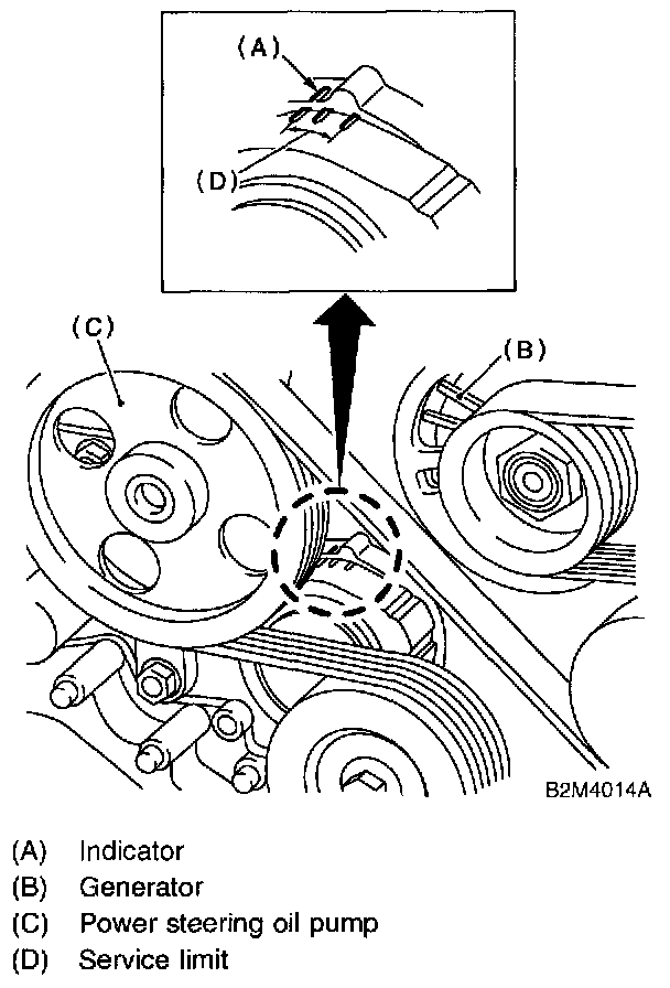Check that the V-belt automatic tensioner indicator is within the range (D).