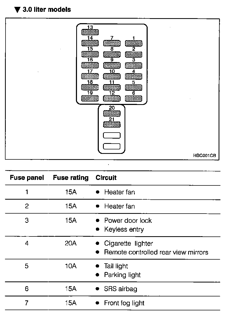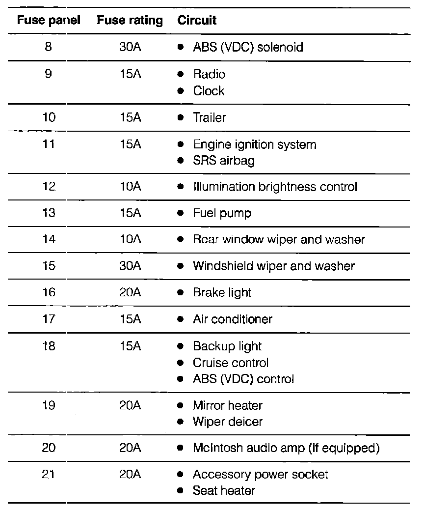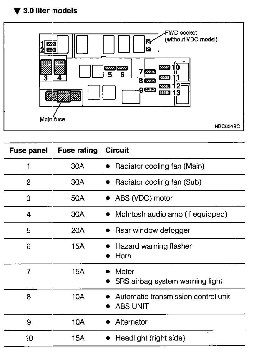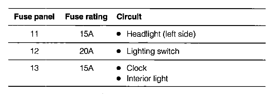 Fuse Panel/Relay Details