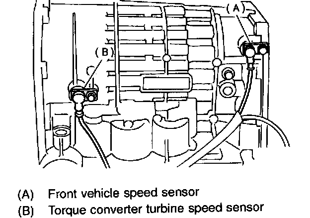 11. Remove front vehicle speed sensor and torque converter turbine speed sensor.