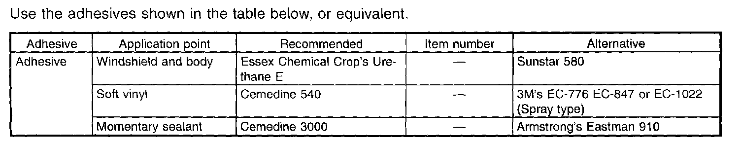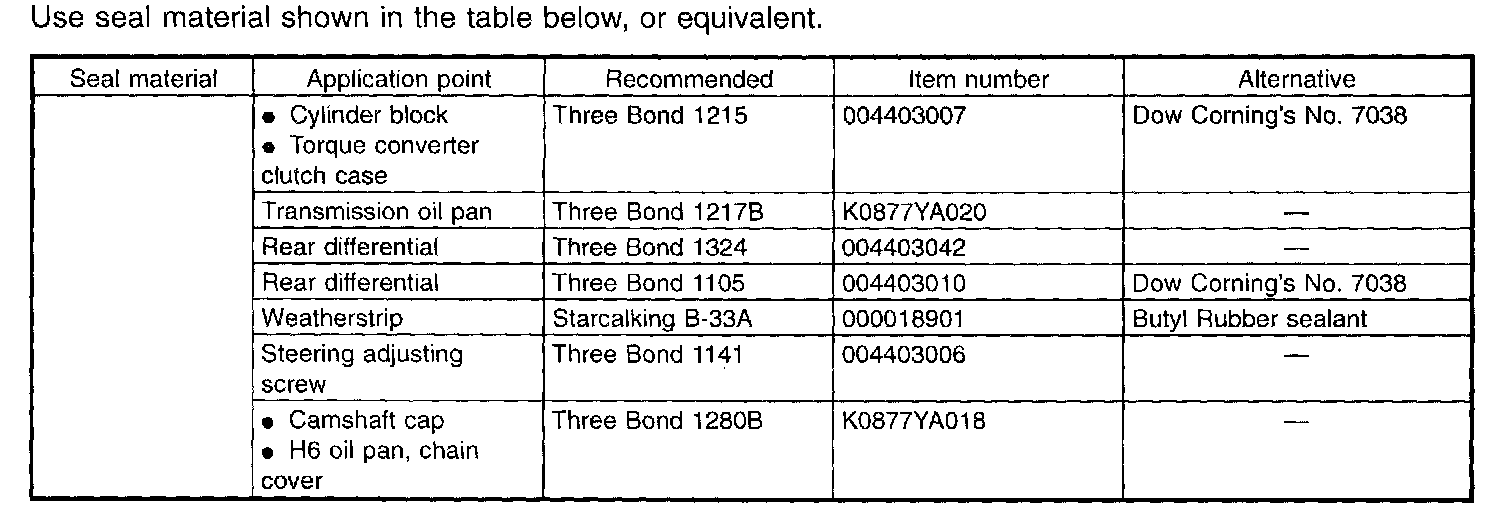 To insure the best performance, always use the specified oil, gasoline, adhesive, sealant, etc. or a substitute of equivalent quality.