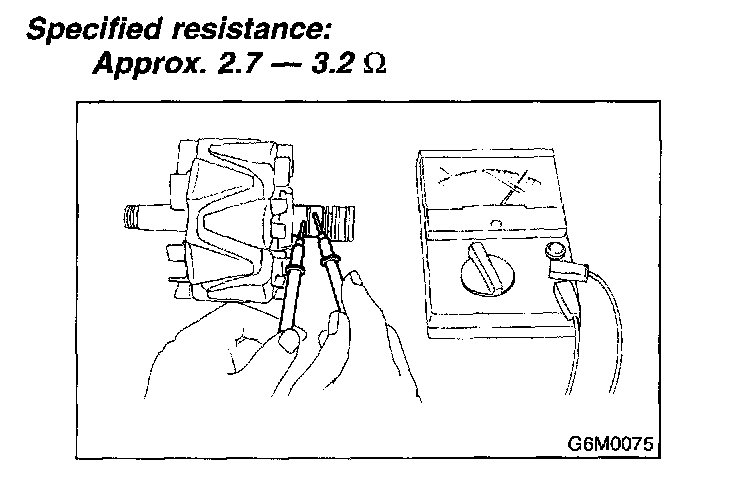 Inspect stator coil resistance is 1 Ohm or less between stator core and each end of the lead wire. If resistance is 1 Ohm or less, the stator coil is grounded, and so replace stator assembly.