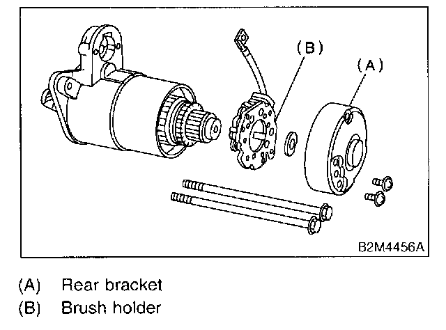 3. Remove both through-bolts and brush holder screws, and detach rear bracket and brush holder.