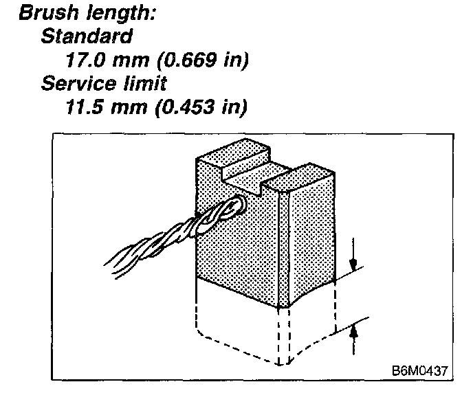Measure the brush length and replace if it exceeds the service limit.