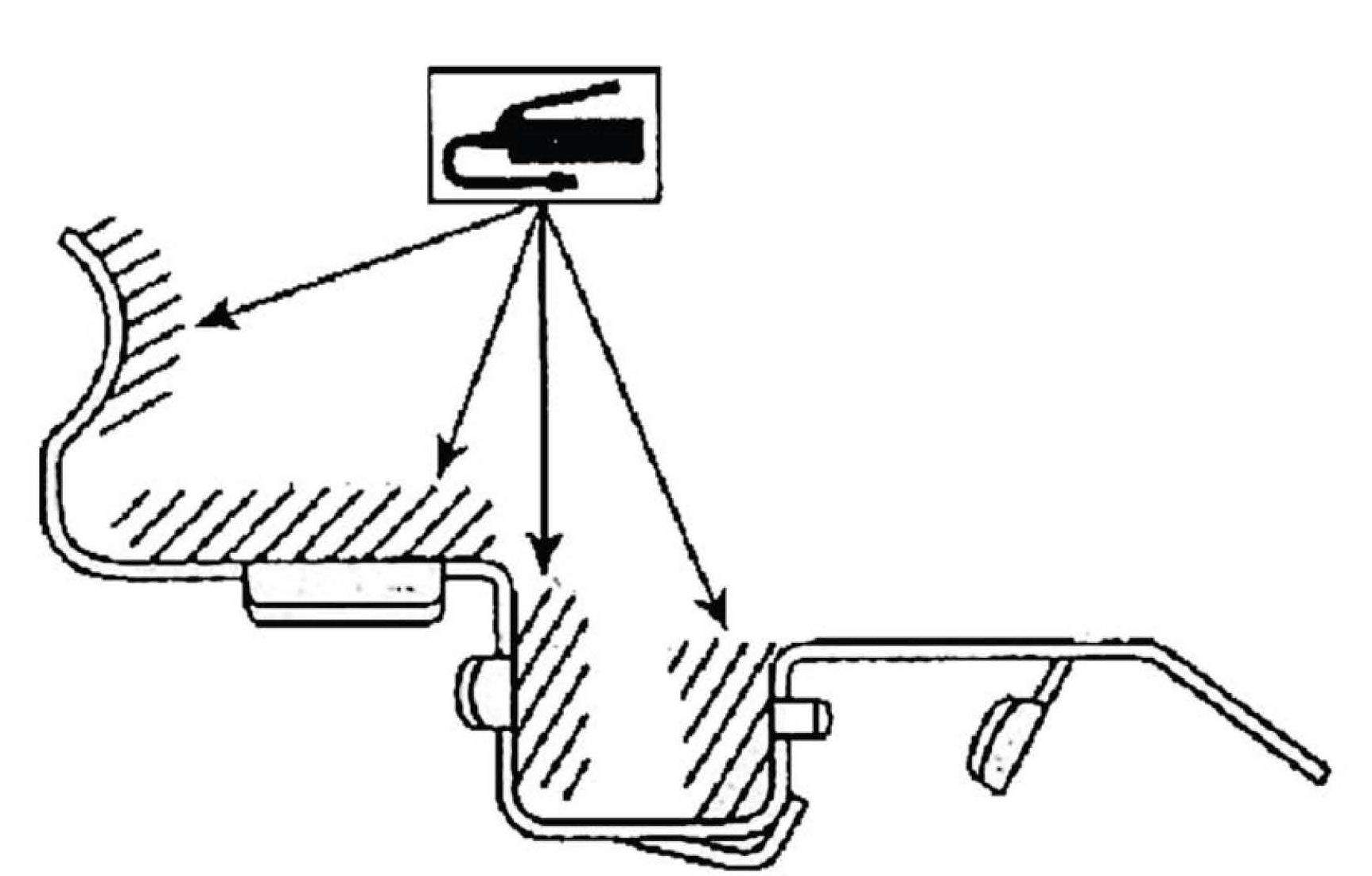 PREVENTIVE MEASURE FOR SURFACE RUST AROUND DISK BRAKE PADIf you encounter a complaint that the brake pad is not sliding properly or that a squeaking type noise can be heard even though the brake performance is normal, and the vehicle is operated in the salt belt or coastal areas, there is a possibility the brake pad portion may have some surface rust on it. The cure is to apply a thin coat of grease (Molykote AS-880N or equivalent) to the parts as shown below.