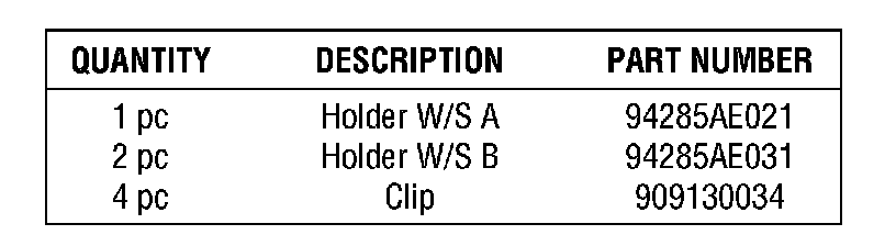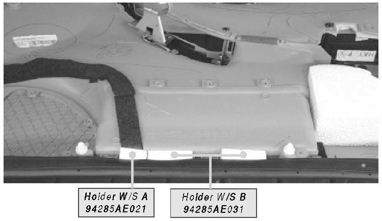 3) Insert the three holders into the space between the weather strip and the bottom of the door pocket protrusion, ensuring that the holder is wedged flush with the weather strip (see picture).