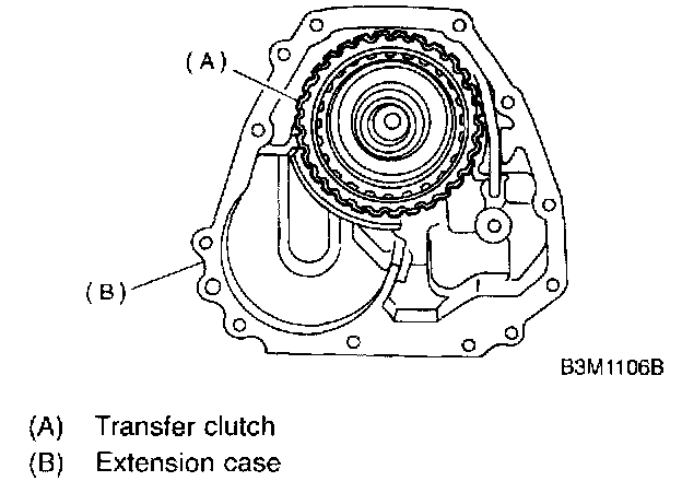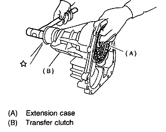 1. Take out the transfer clutch by lightly tapping the end of the rear drive shaft.