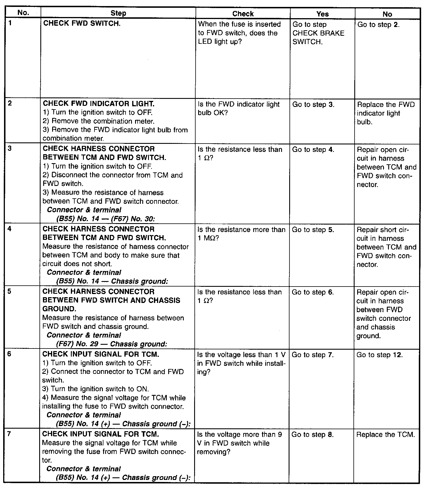 CHECK FWD SWITCH.