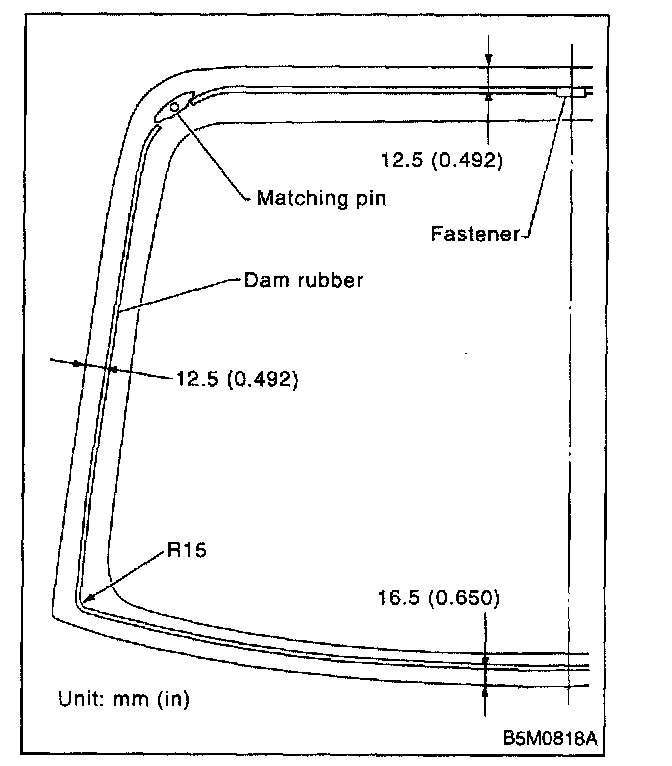 NOTE: For minimum drying time and time the vehicle must be left standing before driving after bonding, follow instructions or instruction manual from the adhesive manufacturer.