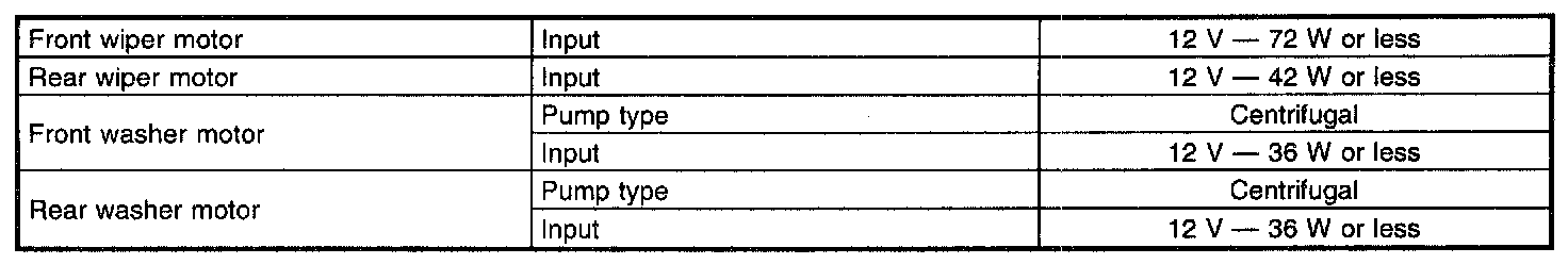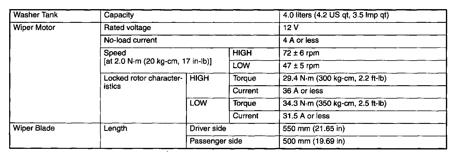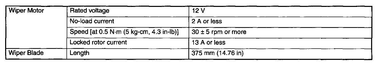 Wiper and Washer Systems: Specifications