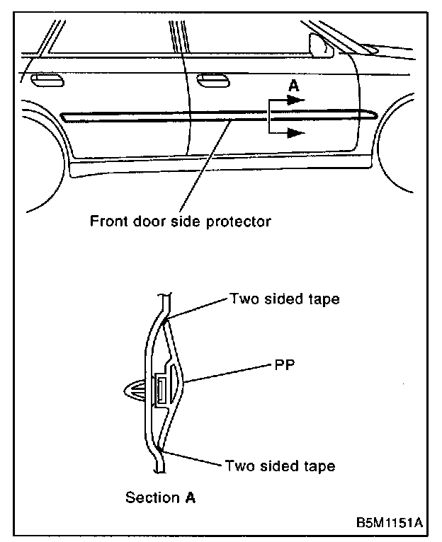 2. Attach masking tape to outer perimeter of side protector. (If original side protector is re-installed, tape the entire protector.)