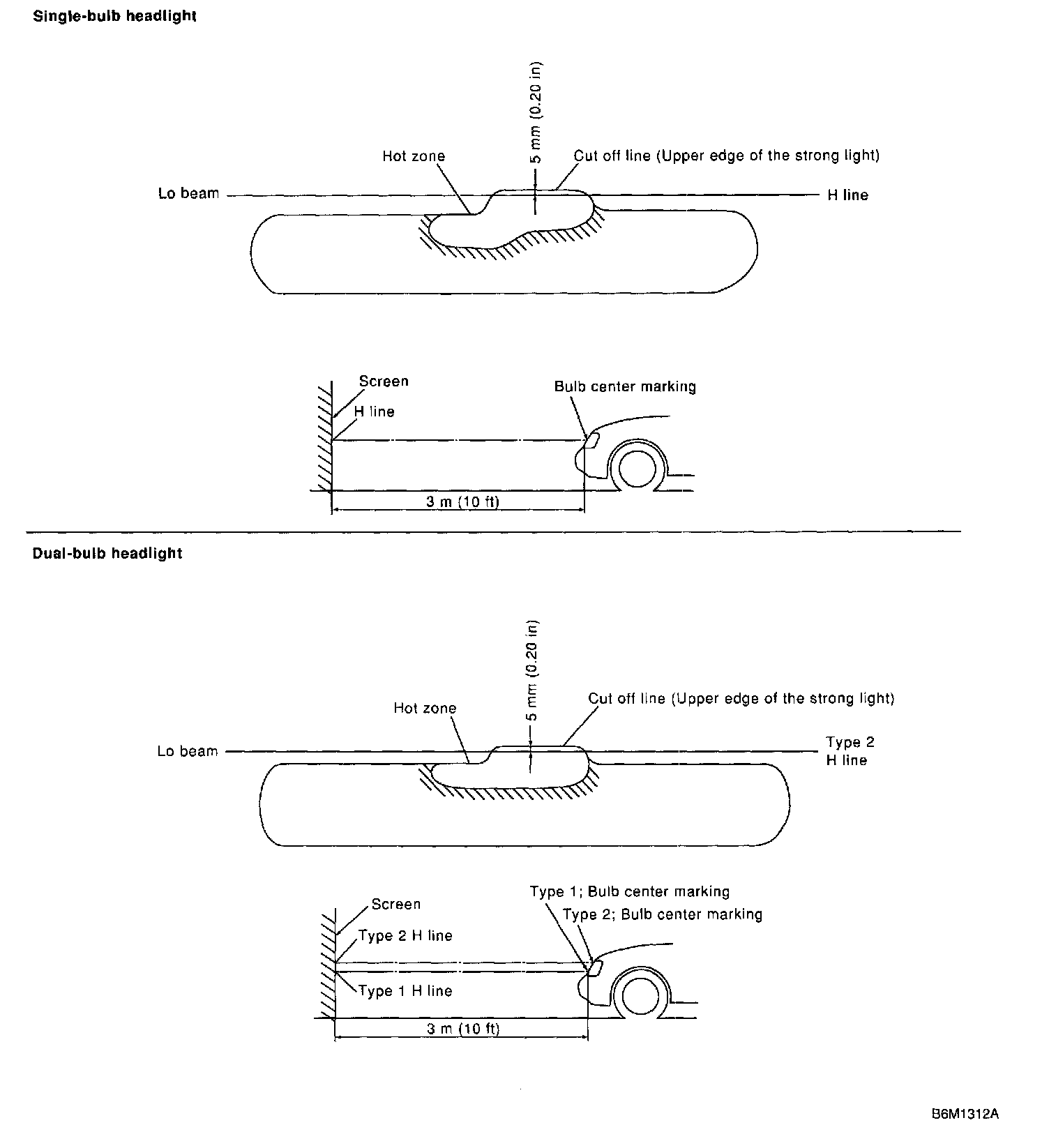 Turn the headlight on and then adjust the low beam pattern to the following positions on the screen.