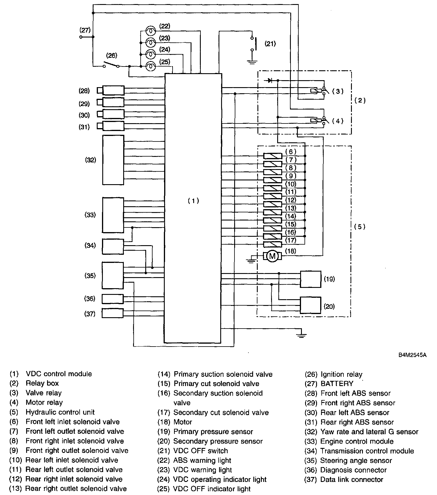 ^ The terminal numbers in the VDC control module connector are as shown in the figure.