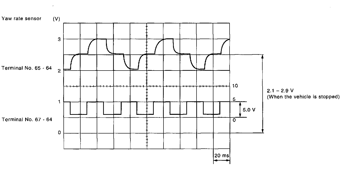 ^ When the connector is removed from the VDCCM, the connector switch closes the circuit between terminal No. 53, No. 54 and No. 55. The ABS and VDC warning light illuminate.