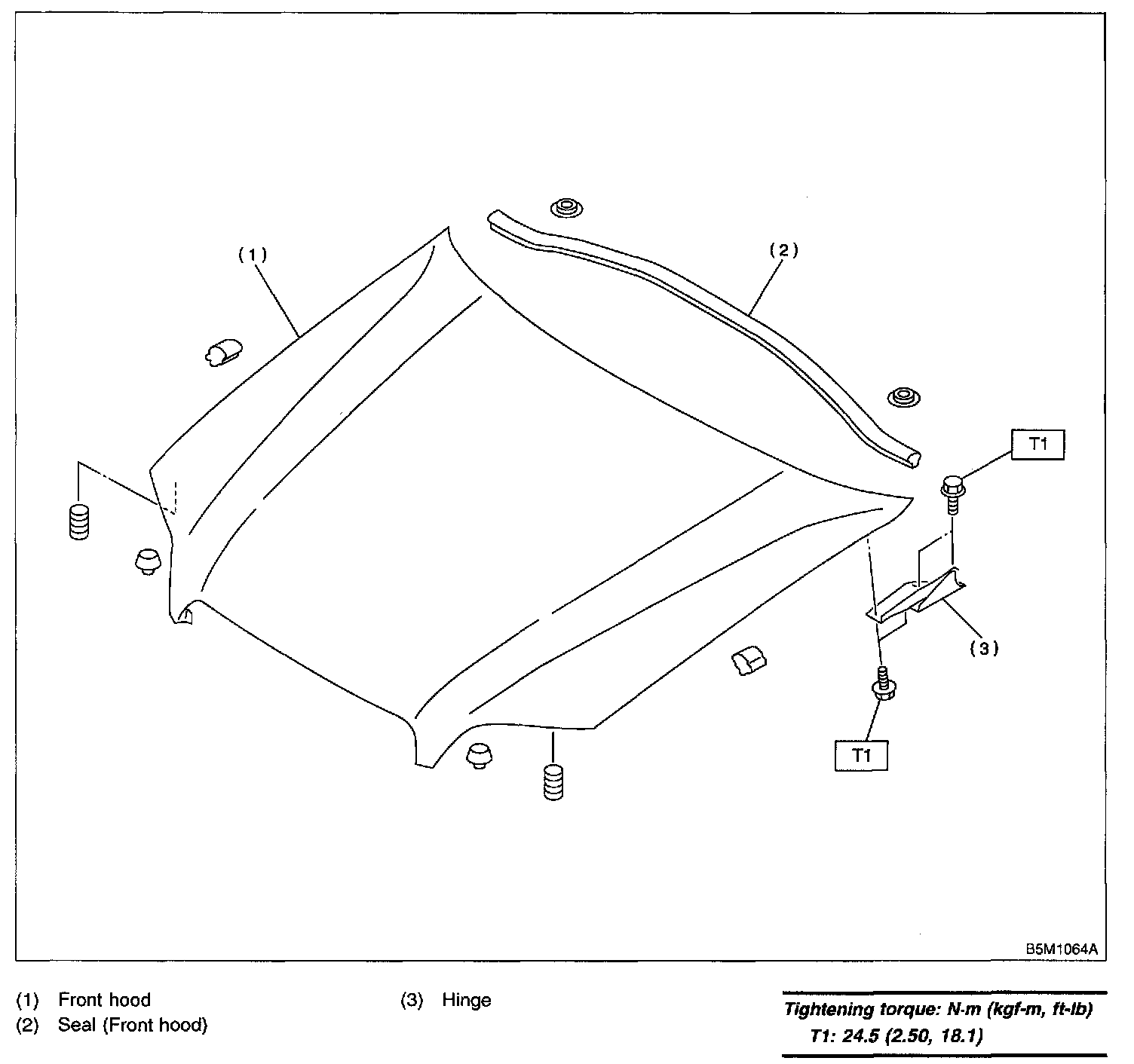 Tightening torque: 24.5 N.m (2.50 kgf-m, 18.1 ft-lb)