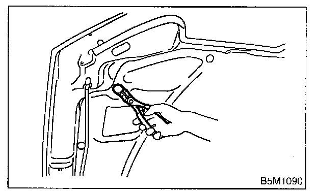 2. Adjust clearance between hood and fender. Clearance must be equal at both sides.