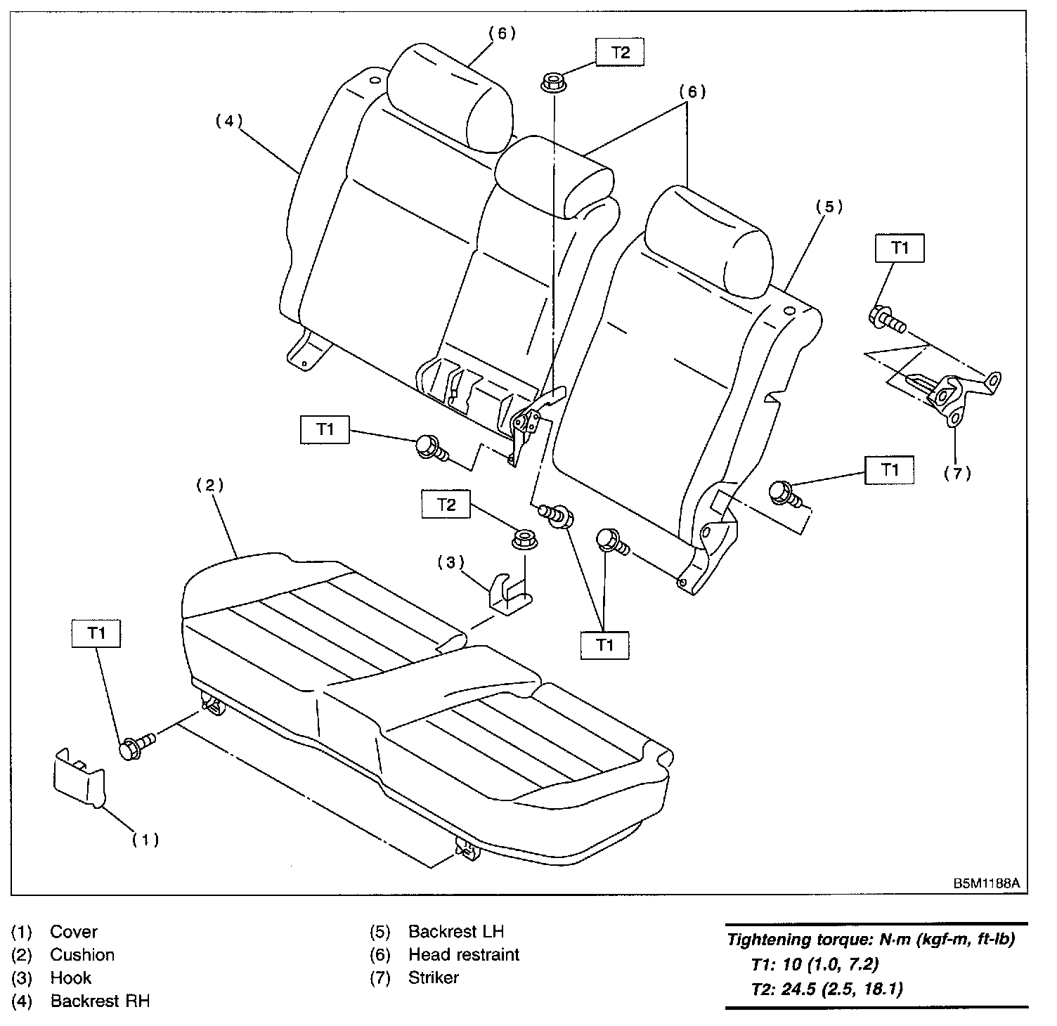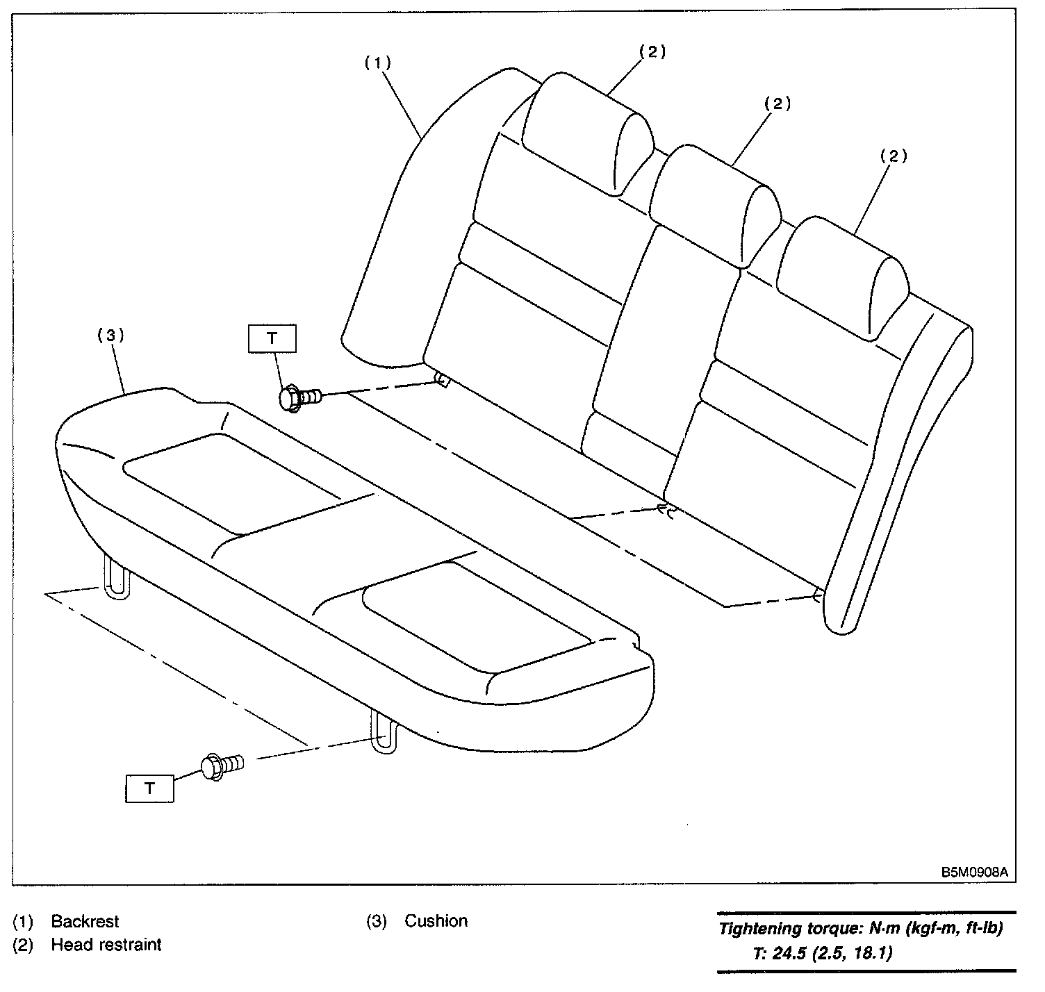 2. Remove bolts, and then remove rear seat cushion.