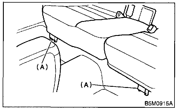 1. Slightly raise front of cushion while pushing down on cushion in the direction of "A". With cushion held in that position, move it forward until it is unhooked.