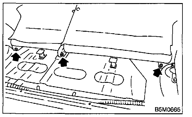 2. Remove bolts securing lower portion of backrest and then open the center trunk through lid.