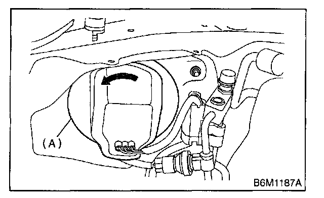 5. Push to remove spring retainer (A) (low beam) or turn bulb assembly (B) counterclockwise (high beam), and then detach headlight bulb.