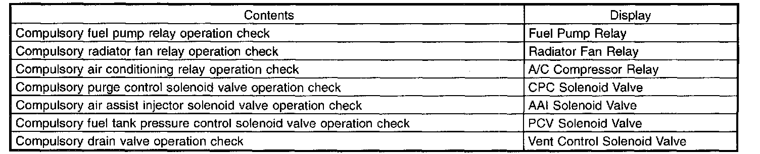 13. Pressing the [NO] key completes the compulsory operation check mode. The display will then return to the �Actuator ON/OFF Operation> screen.
