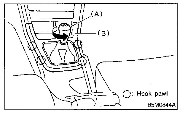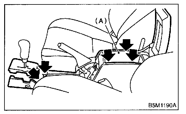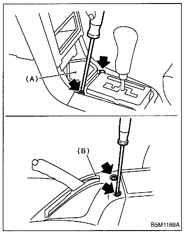 Remove shift knob (A) (MT model) and front cover (B).