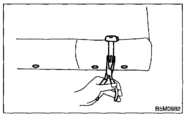 5. While picking up tip with pliers, remove headrest lock bushings.