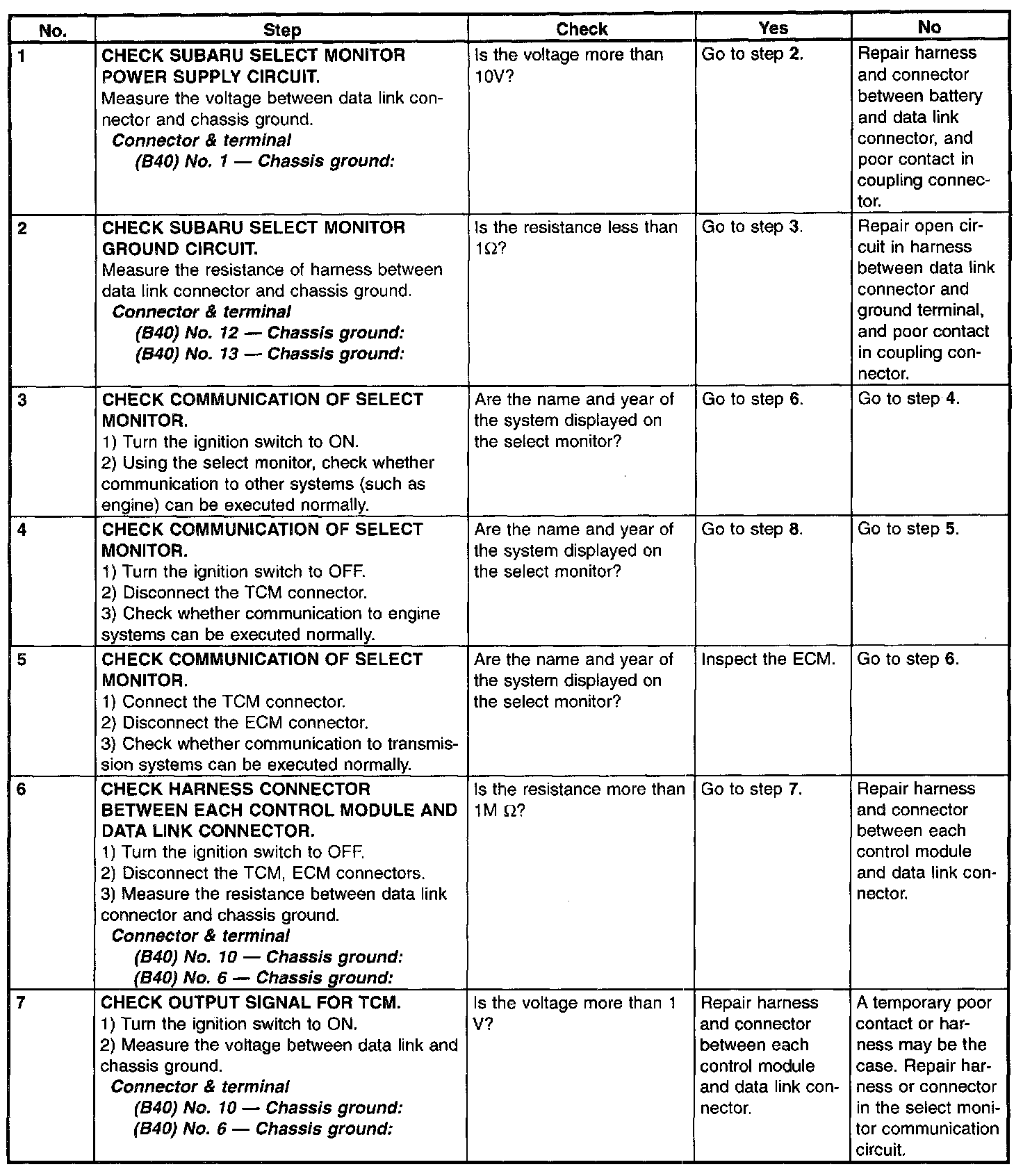 Diagnostic Procedure for Select Monitor CommunicationCOMMUNICATION FOR INITIALIZING IMPOSSIBLE