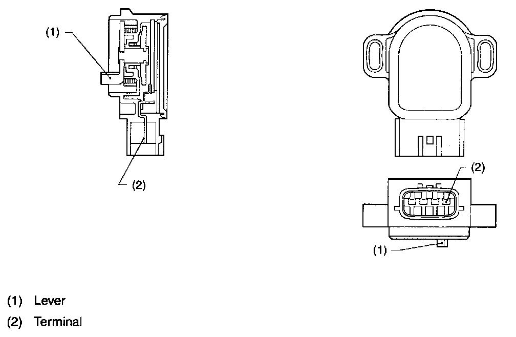 - The throttle position sensor sends the ECM voltage signal corresponding to the opening of the throttle valve. When the sensor's output voltage exceeds a predetermined level, the ECM interprets it as complete closure of the throttle valve. When the output voltage is at another predetermined level, the ECM recognizes that the throttle valve is at a wide open position. Since the output characteristics of the sensor change over years, the ECM is provided with a learning function to be able to interpret signals into throttle valve angles always correctly.