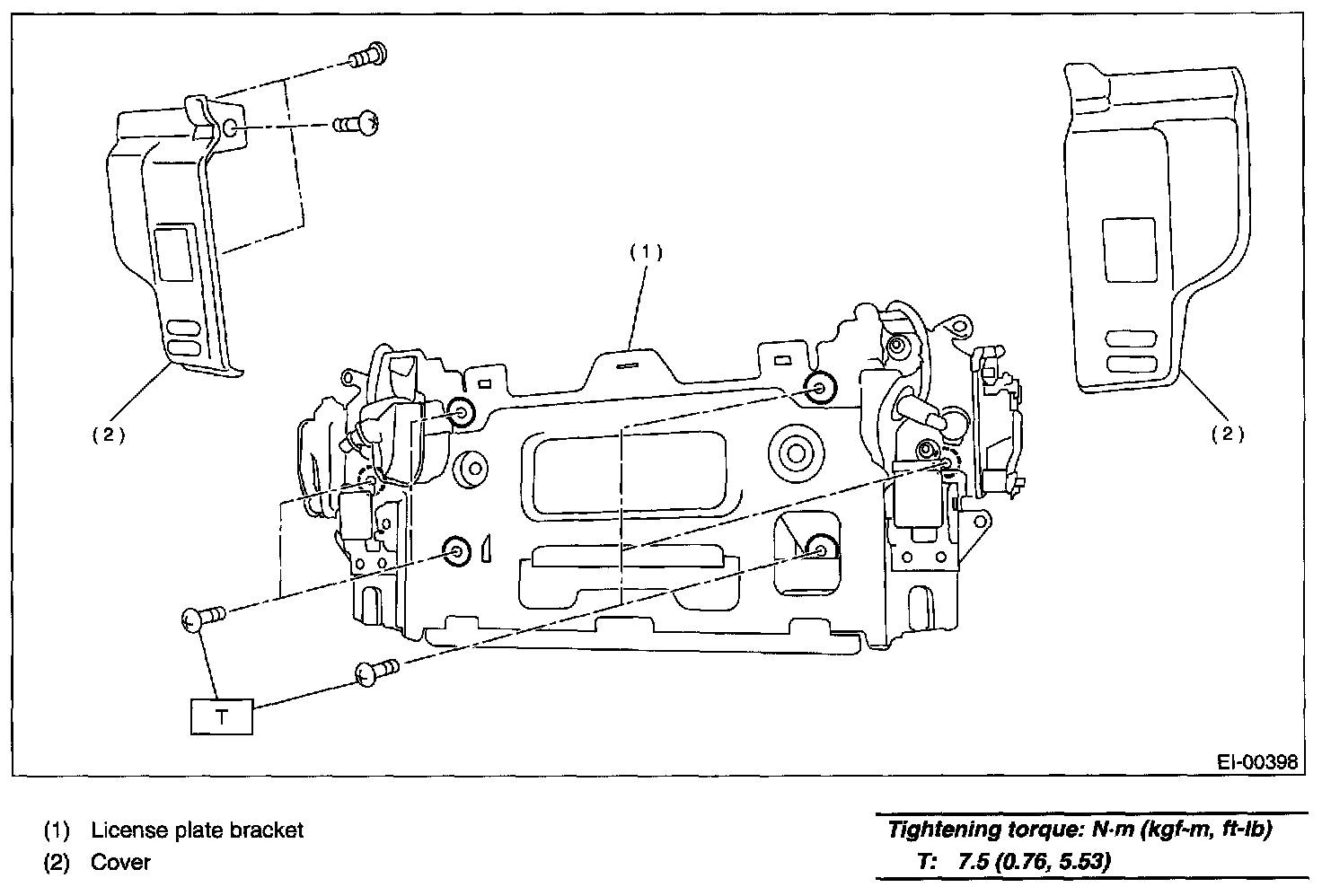 Tightening torque: 7.5 N.m (0.76 kgf-m, 5.53 ft-lb)