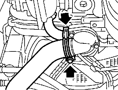 6. Disconnect radiator outlet hose and heater bypass hose from water pump.