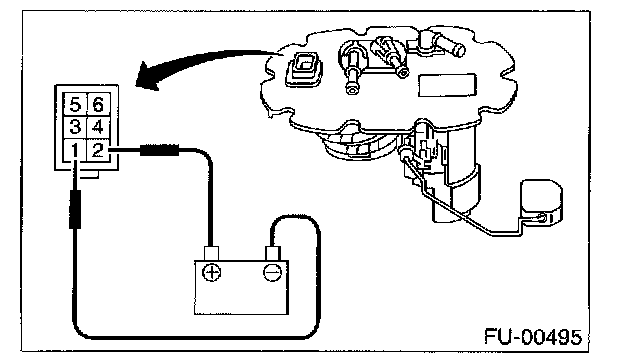INSPECTIONConnect lead harness to connector terminal of fuel pump and apply battery power supply to check whether the pump operate.