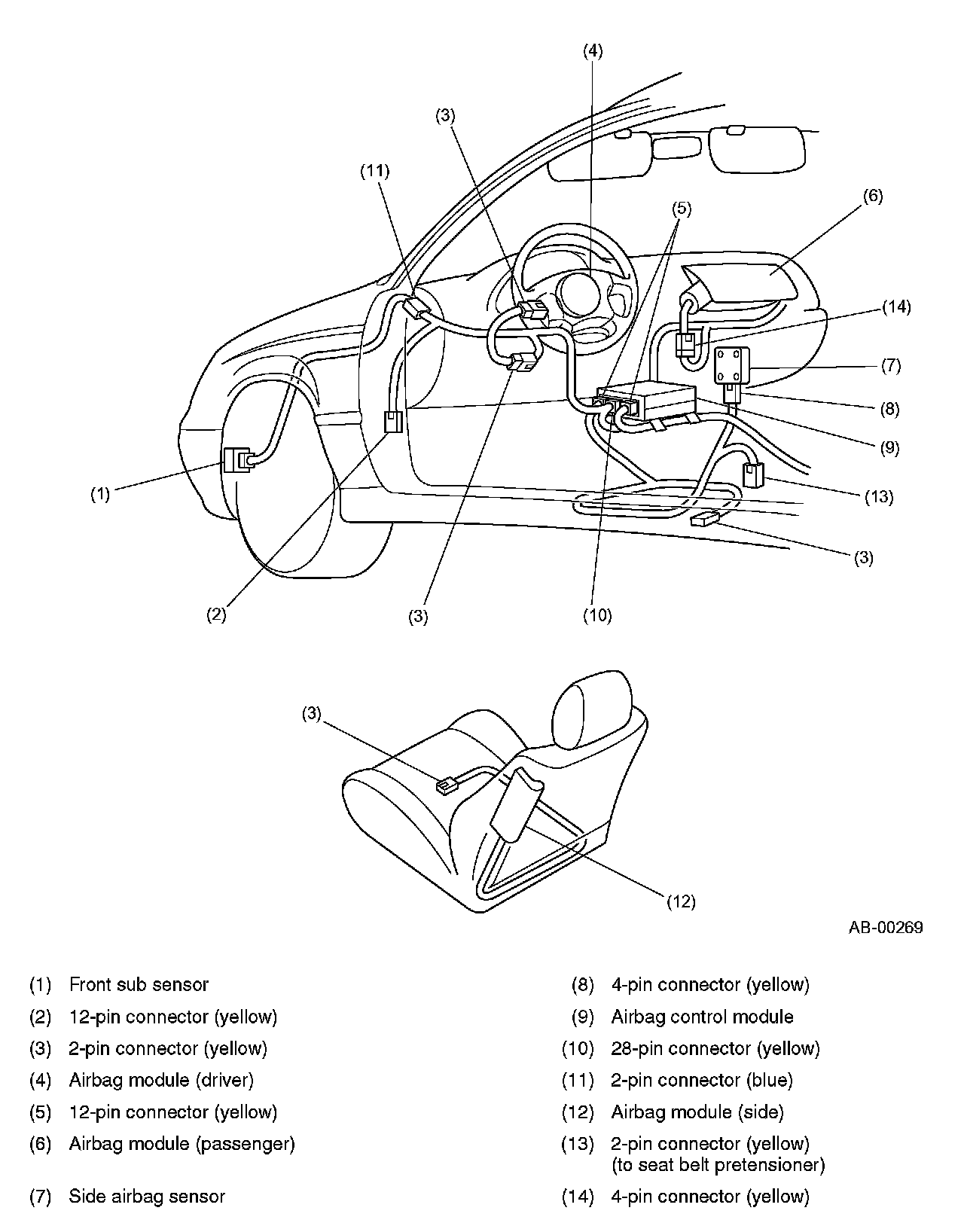 Front Sub Sensor And Side Airbag Sensor Connectors