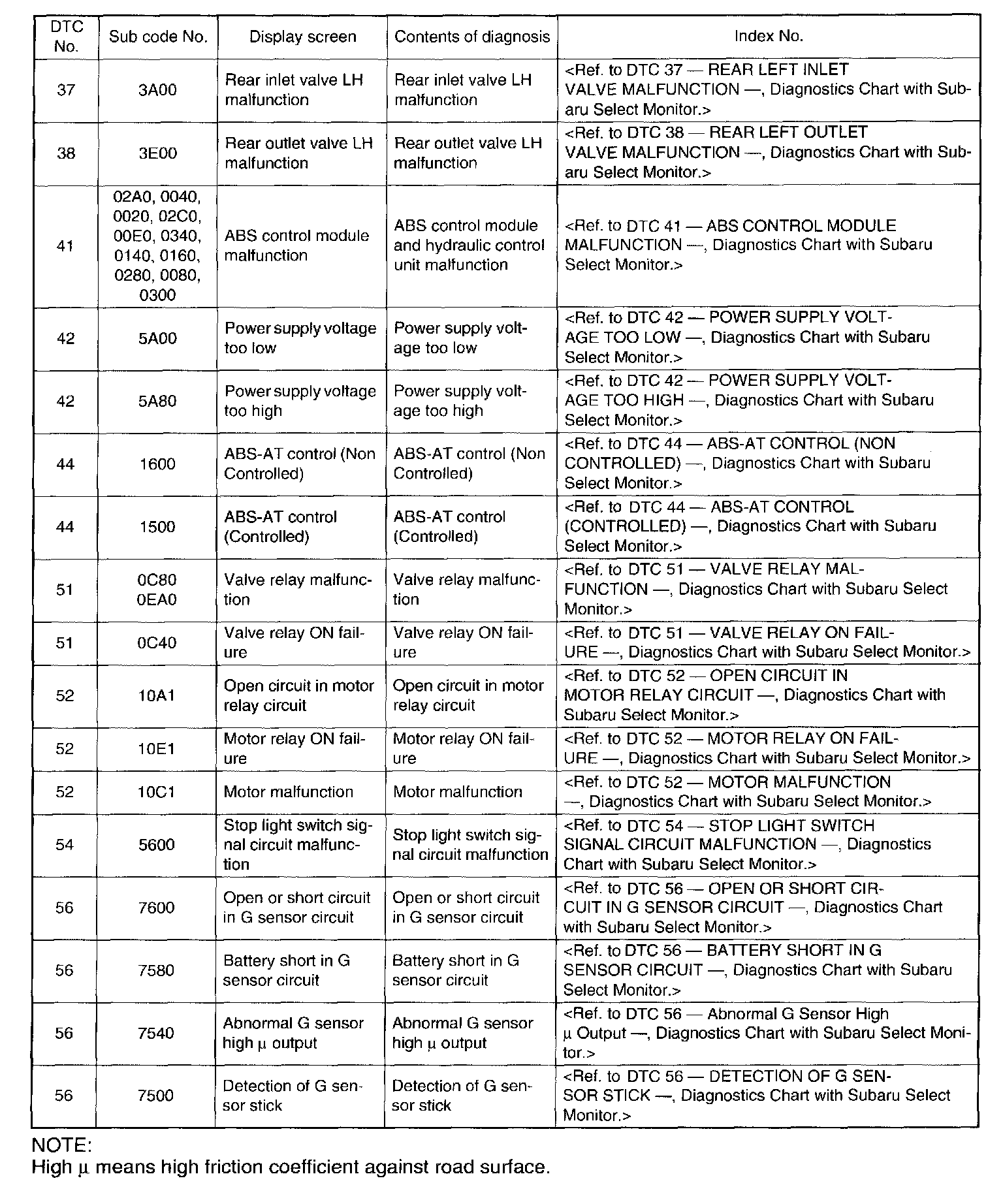 Diagnostic Trouble Code Descriptions