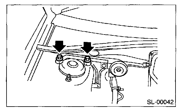 Remove the nuts and then detach the security horn while disconnecting the connector.