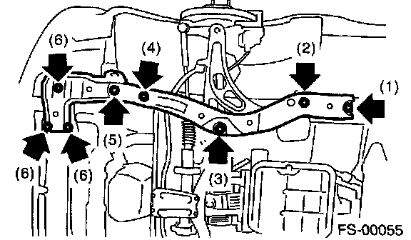 NOTE: Loosen bolt (1) and leave a few threads caught, then remove the bolts in the order of (2), (3), (4), (5), and (6).
