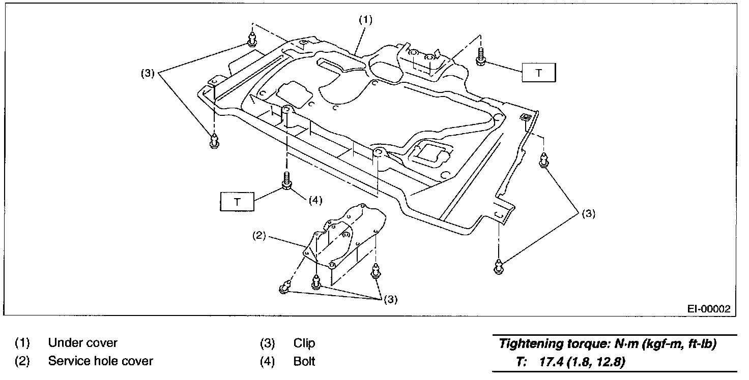 2. Loosen the bolts, remove the clips, and then remove the under cover.