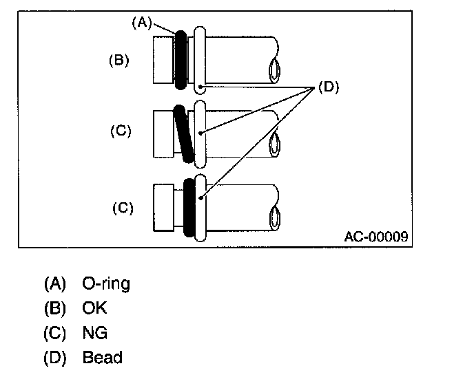 - In order to keep the O-rings free of lint which will cause a refrigerant gas leak, perform operations without gloves and shop towels.