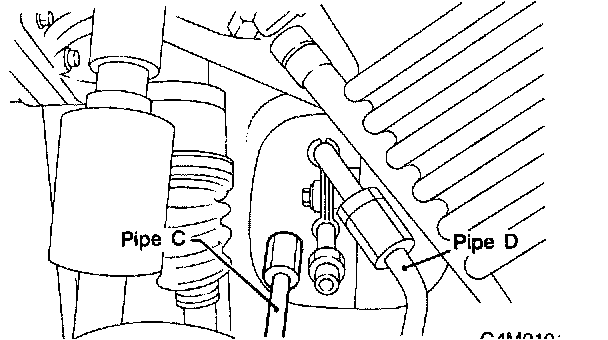 8) Disconnect the pipe C from oil pump. Disconnect the pipe D from return hose.