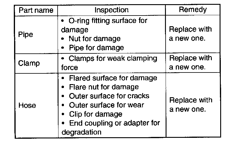 NOTE: It is likely that although one judges fluid leakage, there is actually no leakage. This is because the fluid spilt during the last maintenance was not completely wiped off. Be sure to wipe off spilt fluid thoroughly after maintenance.