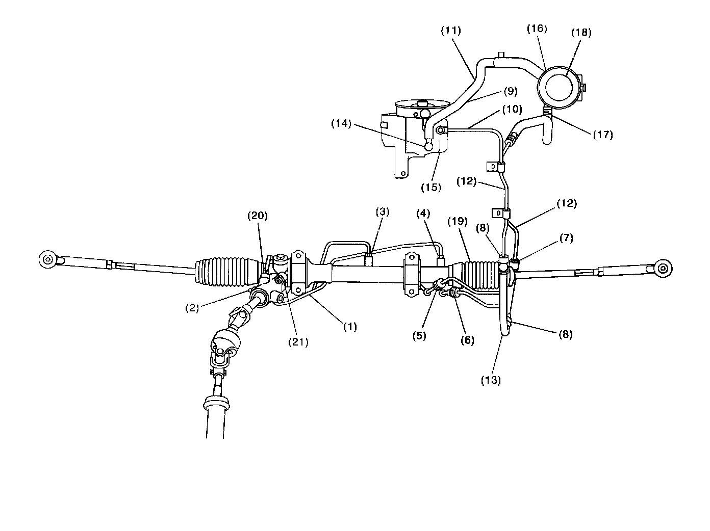 3) Remove the one pipe joint at the center of gearbox, and then connect the vinyl hose to pipe and joint. Discharge fluid by turning steering wheel fully clockwise and counterclockwise. Discharge fluid similarly from the other pipe.