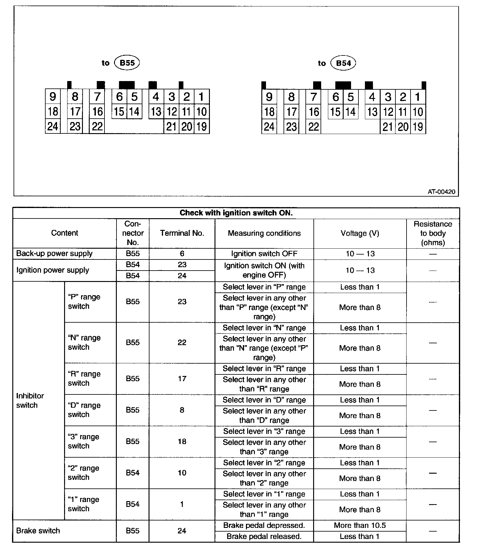 Pinout Values and Diagnostic Parameters