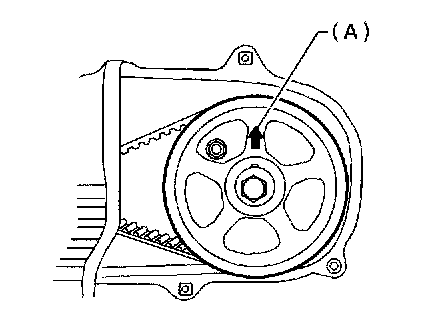 NOTE: When arrow mark (A) on the camshaft sprocket (LH) comes exactly to the top, #1 cylinder piston is brought to the top dead center of compression stroke.