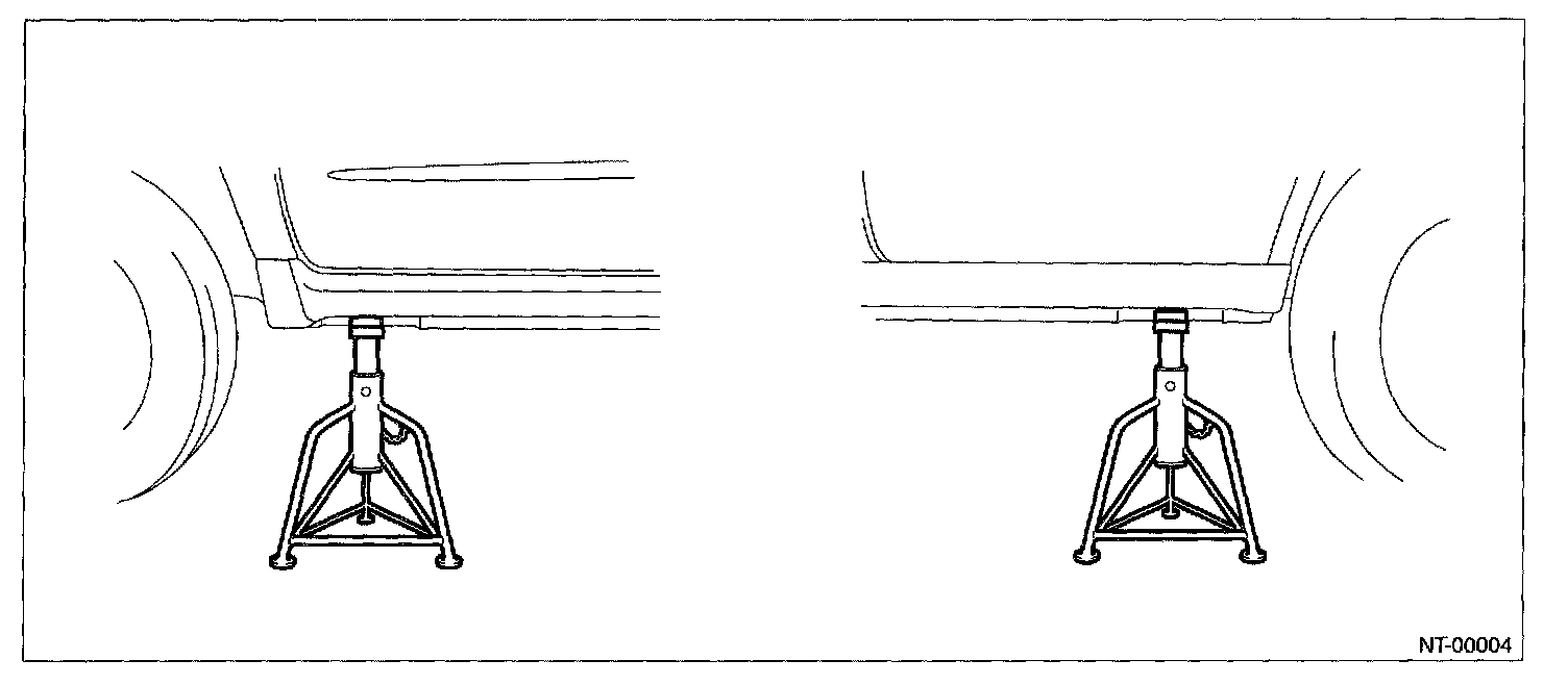 When using a lift or jack-ridged rack to raise a vehicle, always follow instructions concerning jack-up points weight limits to prevent the vehicle from falling, which could result in injury. Be especially careful to make sure the vehicle is balanced before raising it.
