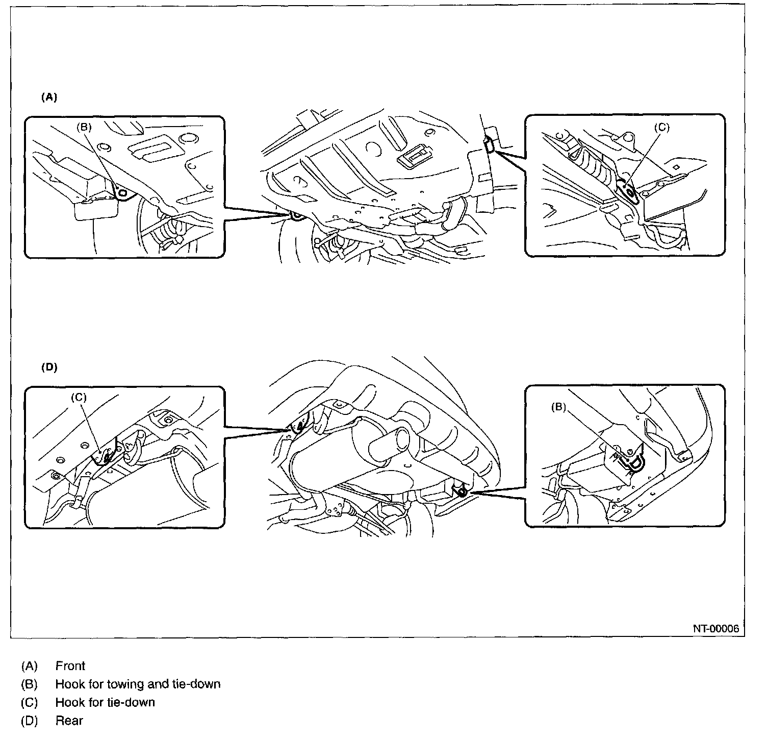 Tie-downs are used when transporting vehicles and when using the chassis dynamo. Attach tie-downs only to the specified points on the vehicle.