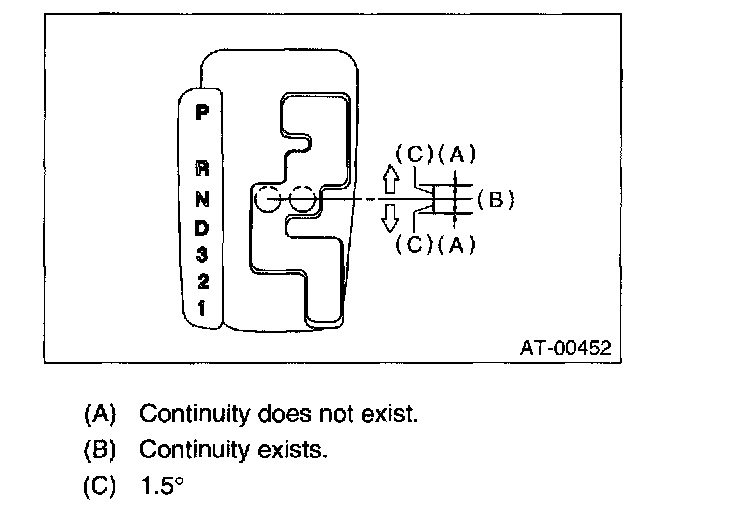 3. Check if there is continuity at equal points when the select lever is turned 1.5° in both directions from "N" range.
