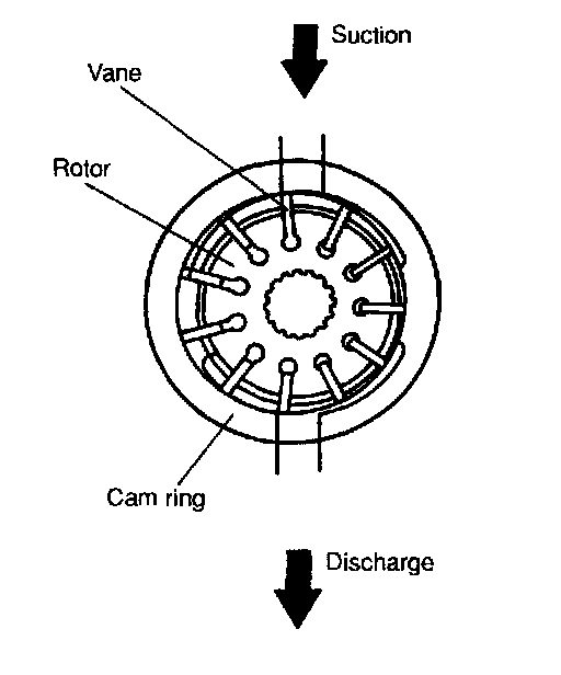 ^ The vane pump consists of a rotor, a cam ring, and eleven vanes.