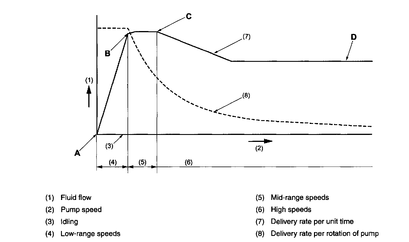 NOTE: In the following description, pump speed ranges will be indicated using the speed points A through D shown in the drawing above.