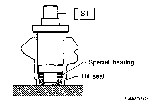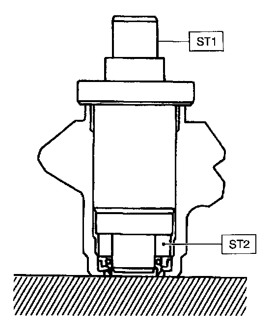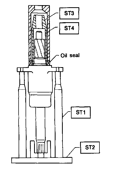 12) Install the ST3 to pinion, and then insert the oil seal. Press the oil seal using a press until ST4 contacts face end of valve housing.