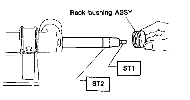 8) Fit the ST1 and ST2 over the end of rack, and then install a new rack bushing.