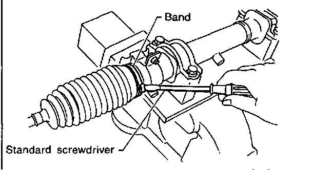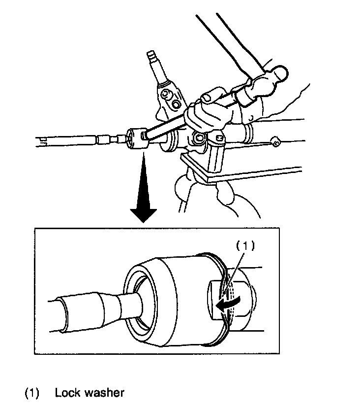 6) Extend the rack approximately 40 mm (1.57 inch) out. Unlock the lock washer on both side of tie-rod end using a flat tip screwdriver.